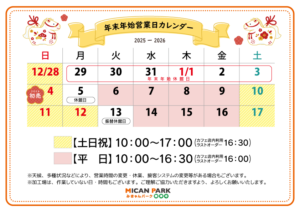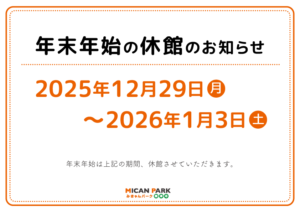 2025年12月29日(月)~2026年1月3日(土)……年末年始休館日